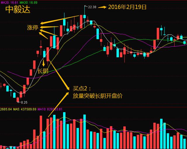 买点2,放量突破长阴开盘价时(60%仓位);