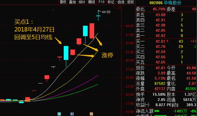 买点1,回调至5日均线附近(40%仓位);