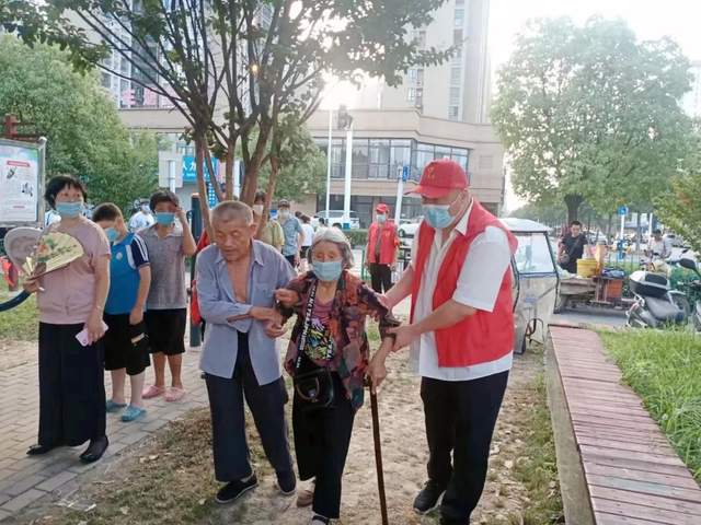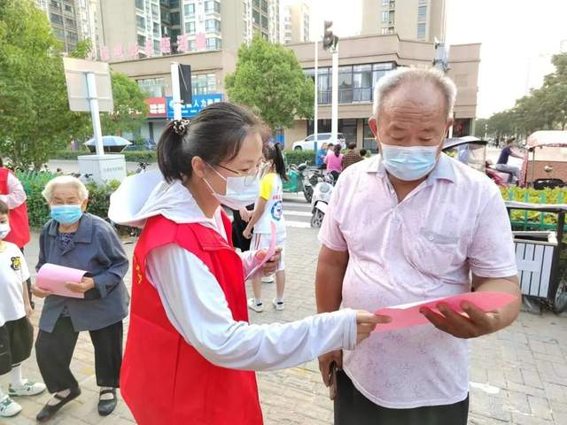 7月22日早上,阜南县特教学校志愿者服务队到学校旁边核酸检测点,协助社区工作人员做好各类协调、调度工作,并发放《致全县市民创建全省文明城市倡议书》。