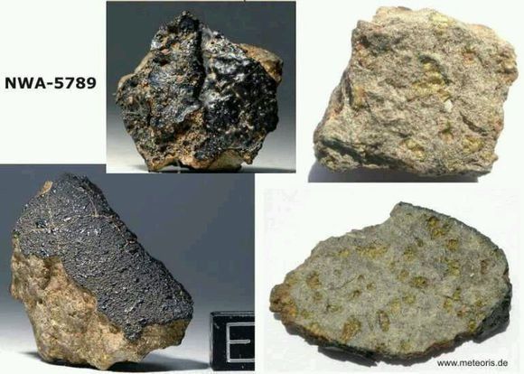 4、纯橄无球粒火星陨石:为堆积岩,类似地球上的橄榄岩。