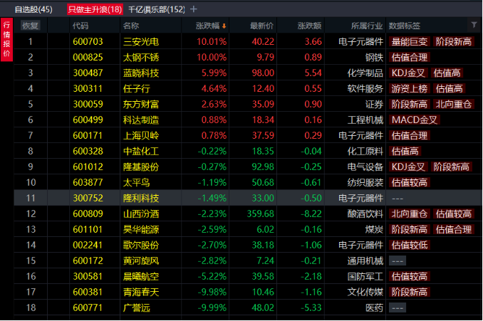 只做主升浪股池(18罗汉)如下: