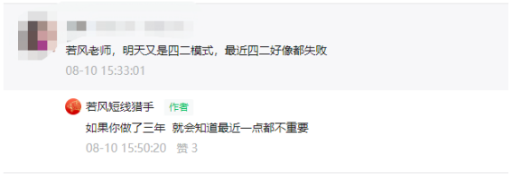 这是8.10号华菱线缆4板的时候的留言,有人知道是42模型,也知道按系统是必做的,但是犹豫了,因为前面两次没怎么赚钱。但是最近赚不赚钱一点都不重要,42模型每年的利润都是好几倍,今年本来没有翻倍的,加上华菱线缆这次,翻倍已经不止了。