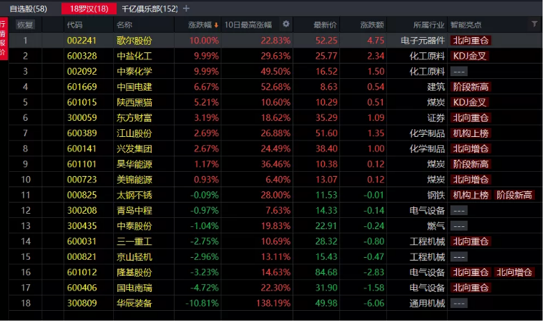 (注意:近期情绪龙头或者行业龙头都会加入18罗汉,但不代表加入就有买点。选股/买点/卖点三者独立,具体的买卖时机很重要,不能盲目操作)