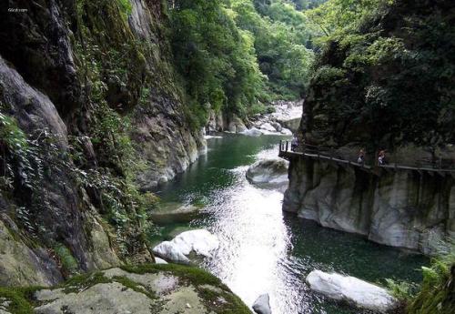 即古天彭门,又称天彭阙。在镇国寺塔北1公里。在湔江出口,海拔1000米的牛心、寿羊二山夹江对峙,相距200余米,纵深约1公里,状若门阙。