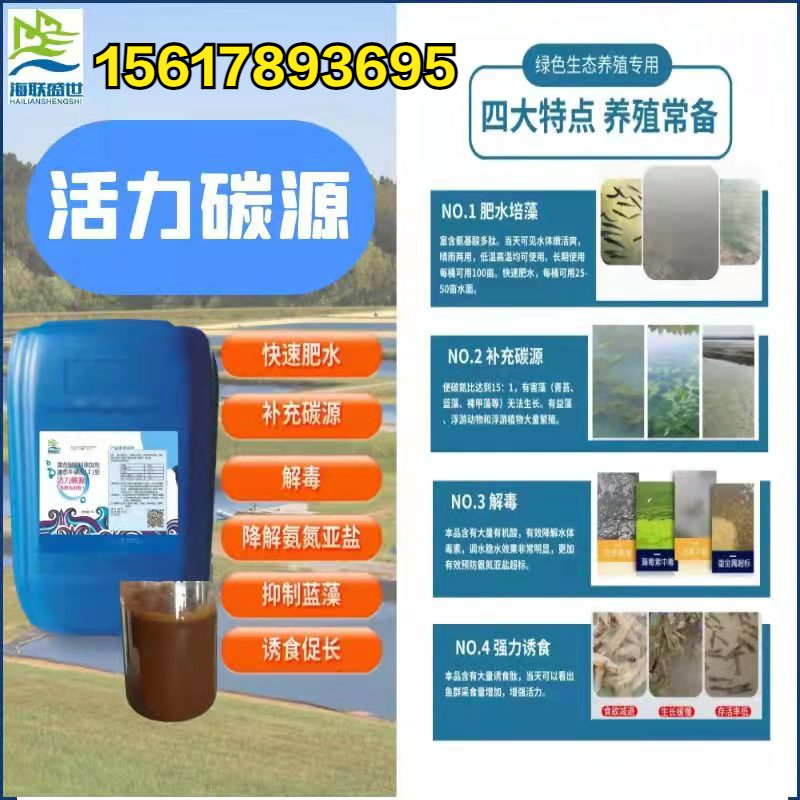 活力碳源含有机生物酸,可降解水体毒素,有效降解氨氮、亚硝酸盐等有害物质。富含有机酸小肽,营养丰富,诱食功能强大,能迅速恢复采食量,提高水产动物机体免疫力。富含乳酸菌,调节水体菌群平衡,调节水产动物肠道菌群,促进生长。