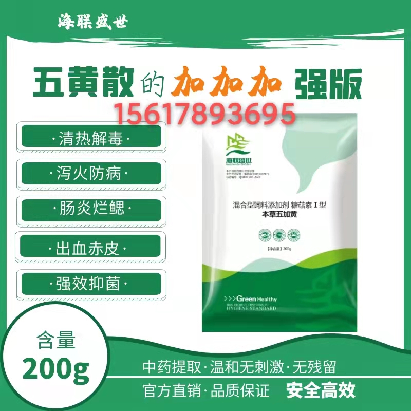 (2)拌料内服【本草五加黄+肝胆相耀+维壮素】,每天一次,连续5-7天。