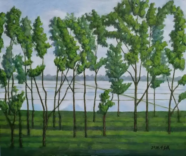 我喜欢王斌先生的创作,他的作品总给人带来宁静祥和。他的作品处处醒透,脱尘而生,自脱牢笼之手,归于自然。从 王斌的作品中我们可以感受到,他是立足于生活的自然之美基础上建构的自己的艺术世界。