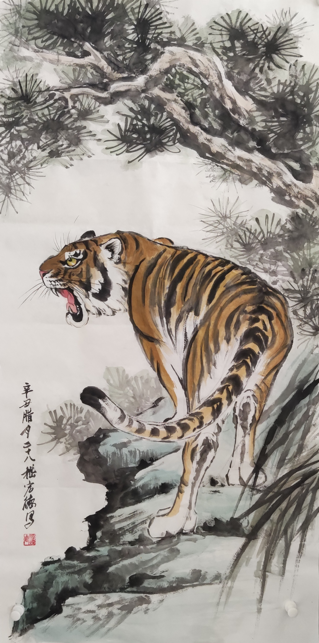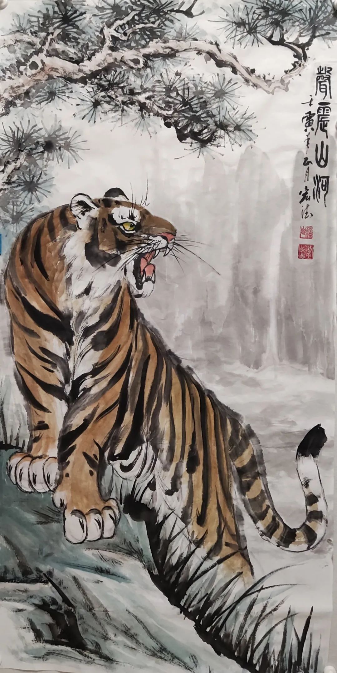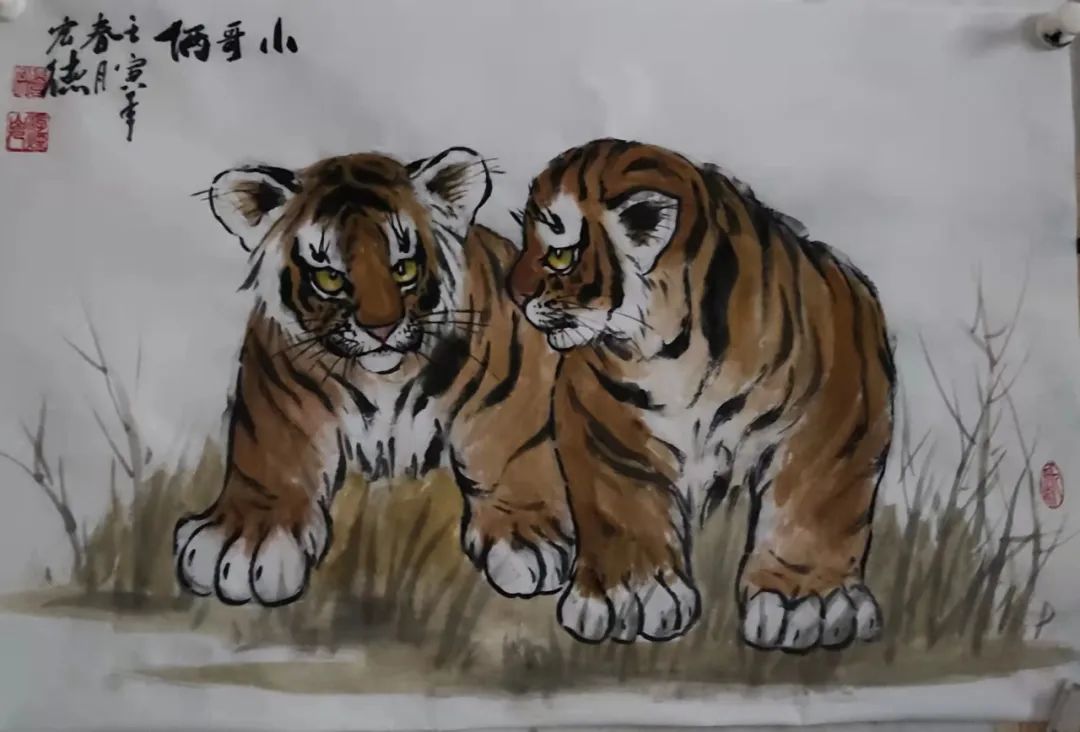嵇宏德,1962年生于山东潍坊,自幼酷爱绘画,启蒙于潍坊著名画家郑经五老先生,毕业于山东师范大学美术系,一直从事高中美术教学工作,作品多次参加全国、省、市书画展,多幅作品被国内外友人和美术爱好者收藏。“庆香港回归”全国美展获铜奖。作品《百虎图》多次接受潍坊电视台《中国画都风向标》栏目、寒亭电视台采访并报道。