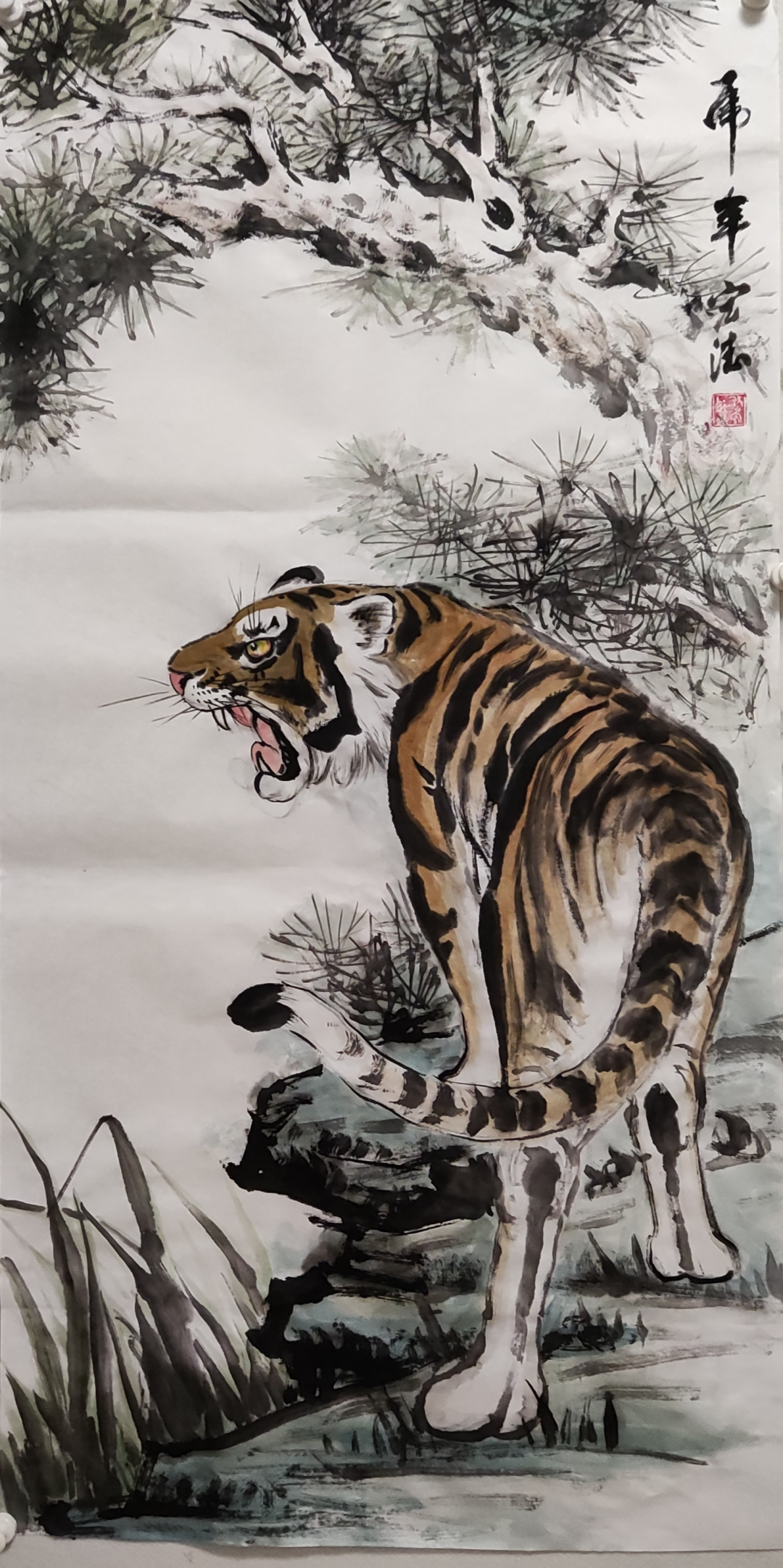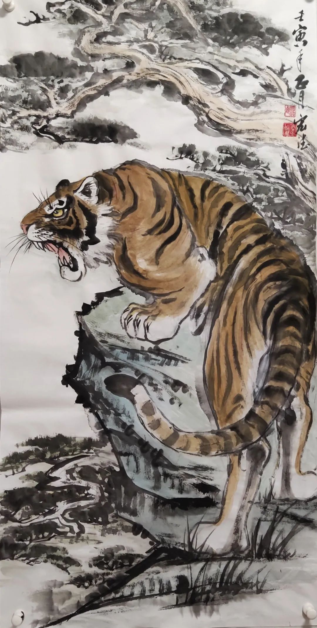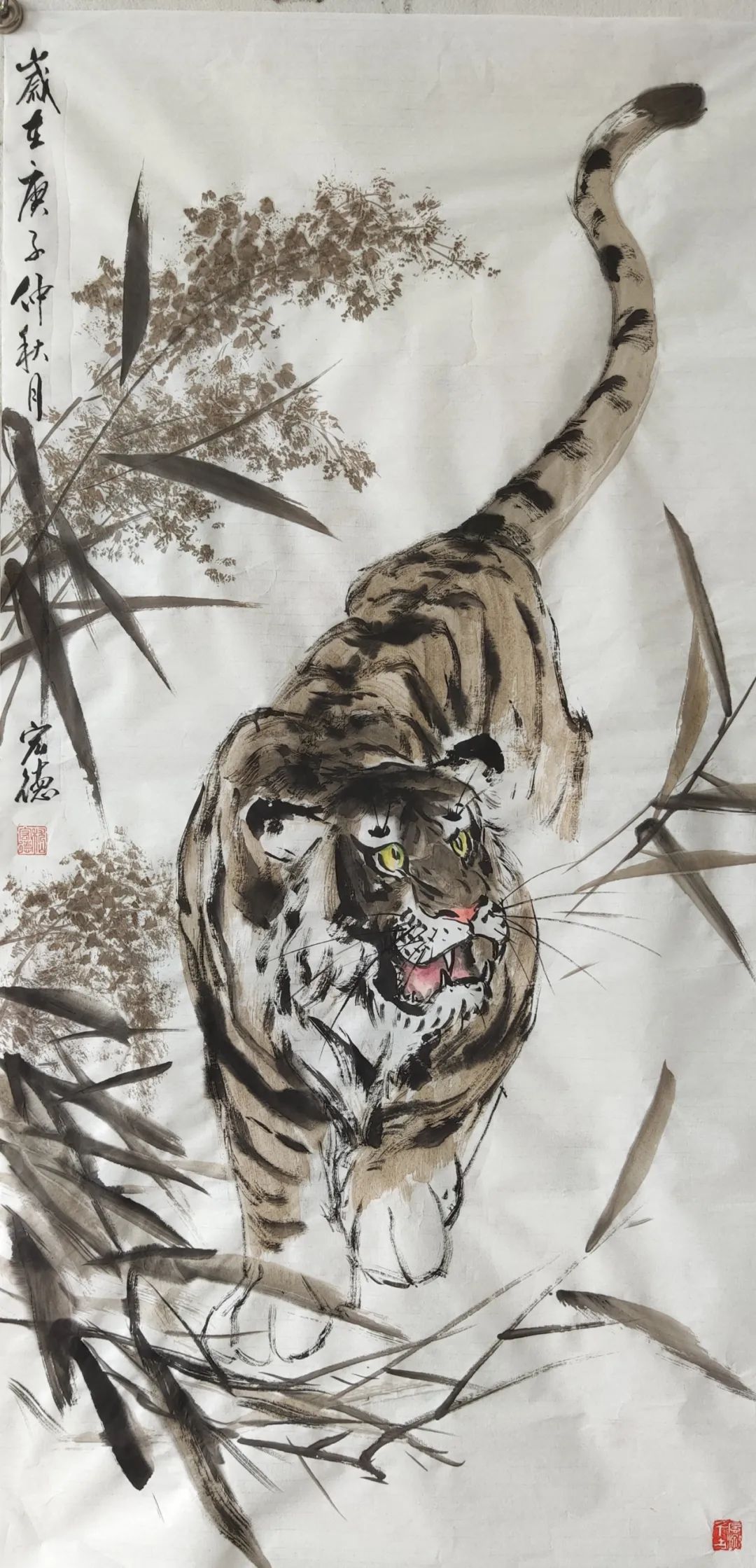 嵇宏德,1962年生于山东潍坊,自幼酷爱绘画,启蒙于潍坊著名画家郑经五老先生,毕业于山东师范大学美术系,一直从事高中美术教学工作,作品多次参加全国、省、市书画展,多幅作品被国内外友人和美术爱好者收藏。“庆香港回归”全国美展获铜奖。作品《百虎图》多次接受潍坊电视台《中国画都风向标》栏目、寒亭电视台采访并报道。