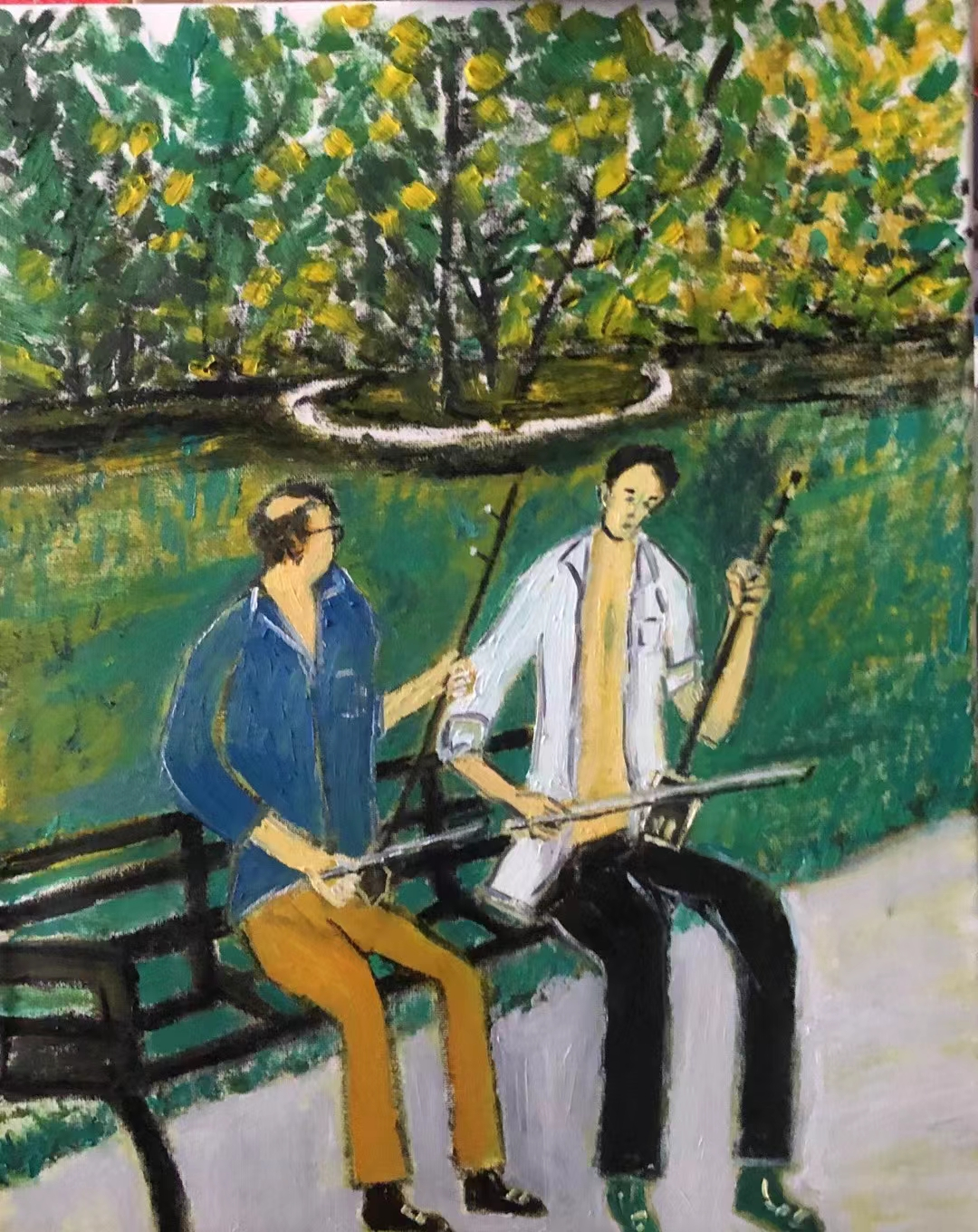 《二胡重奏》布面油画 40X50CM 2022