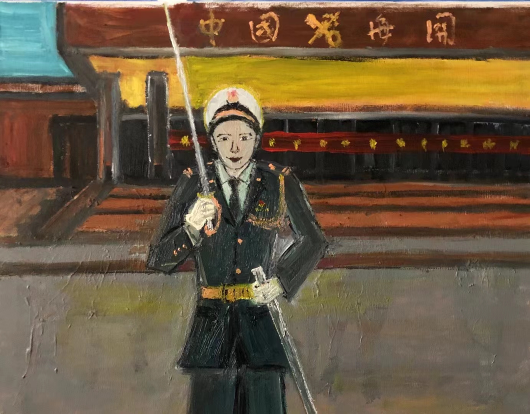 《海关卫士》布面油画 40X50CM 2022
