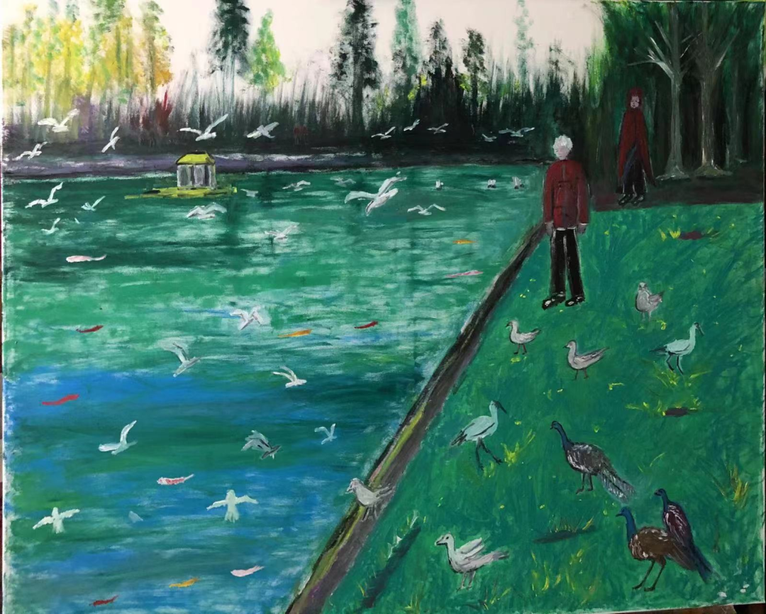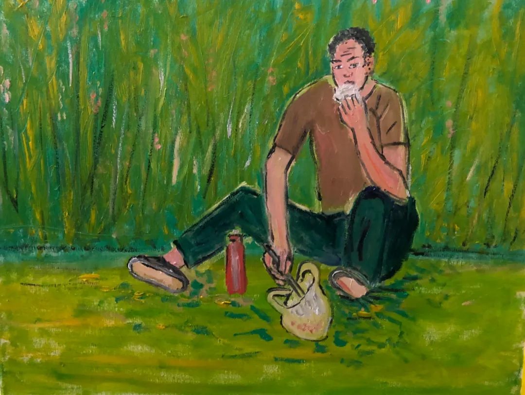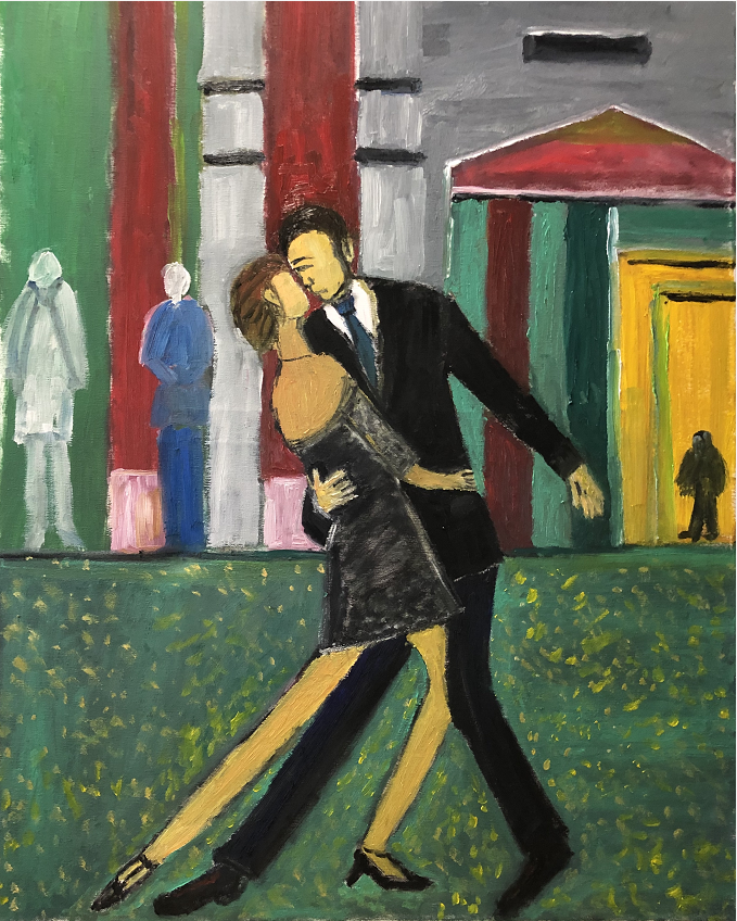 《草地上的探戈》布面油画 60X80CM 2022