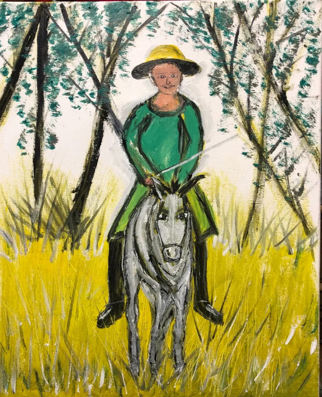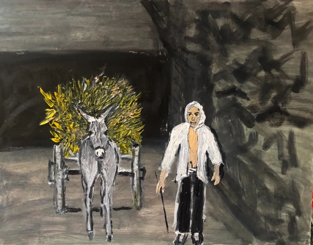 《悠哉!骑驴老汉》布面油画40X50CM 2022