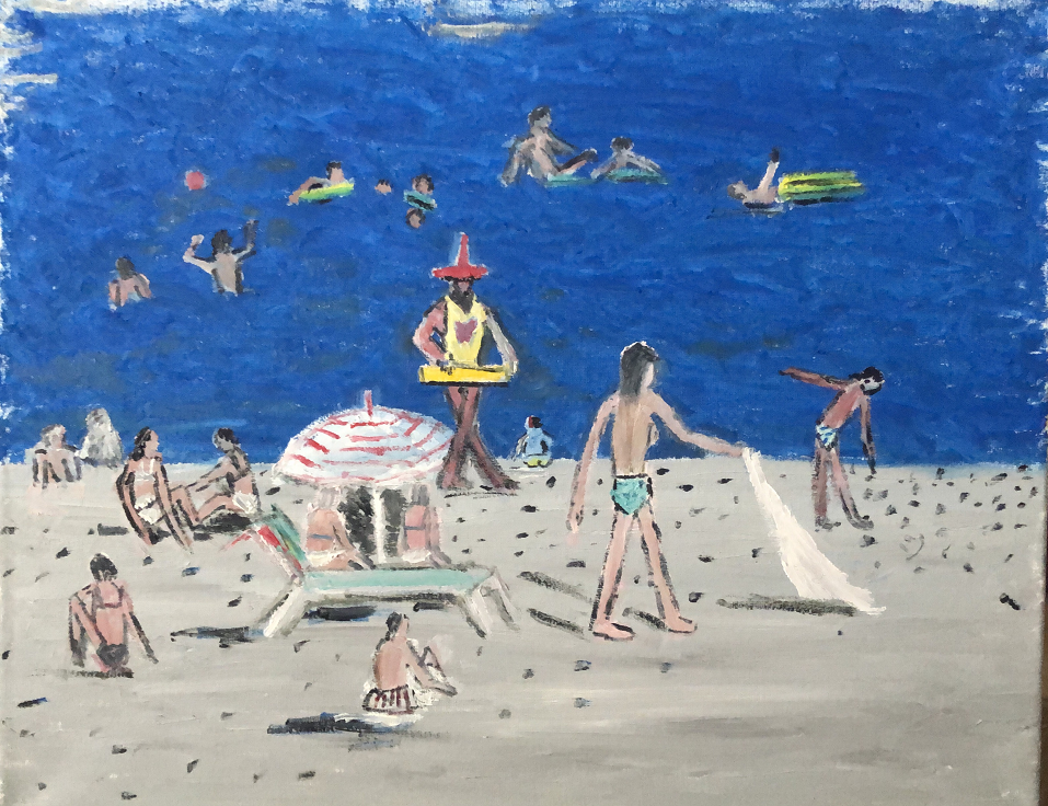 《四月的嘎纳海滩》布面油画40X50CM 2022