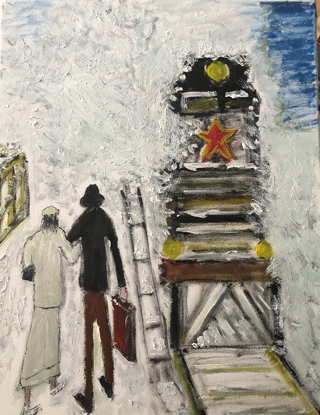 《风雪行程老火车》布面油画 40x50CM 2022