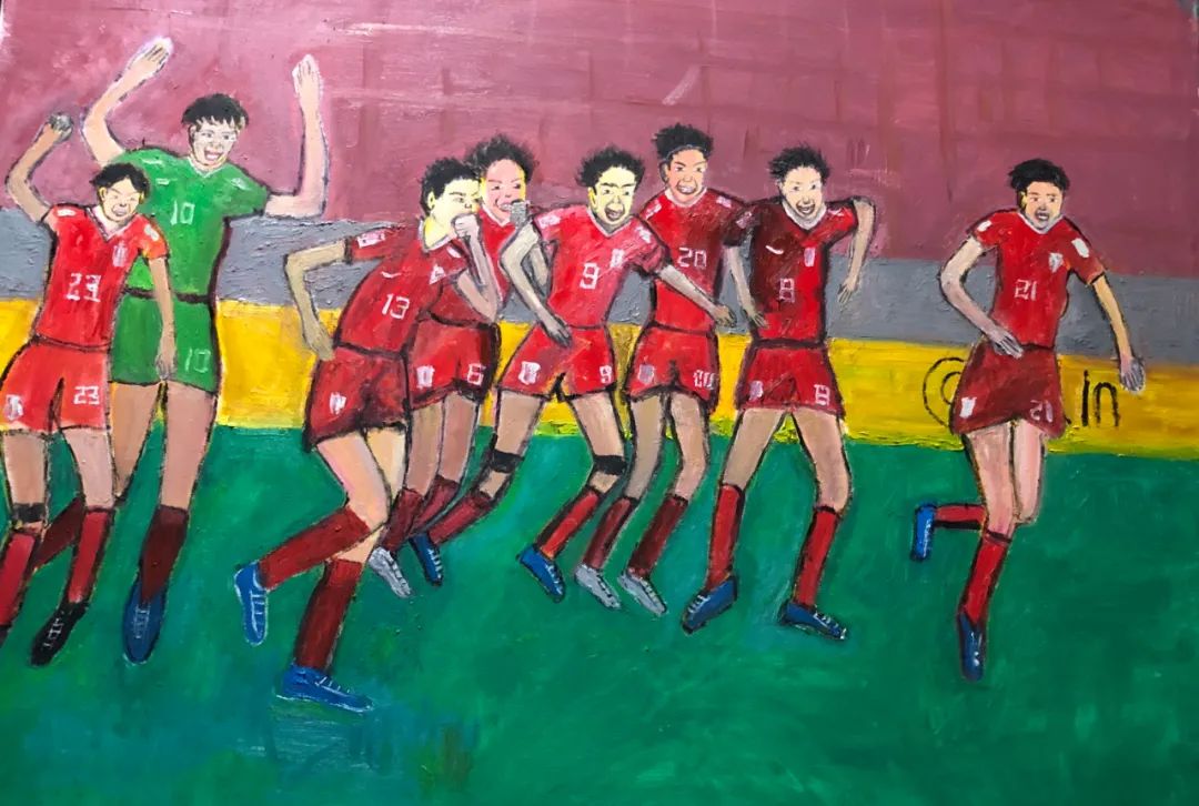 《女足夺冠》布面油画120X100CM 2022