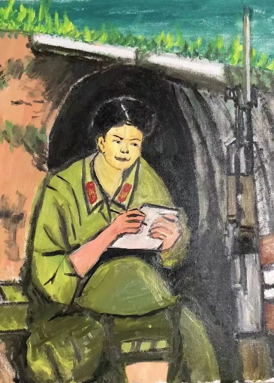 《写封家书》布面油画40X50CM 2022