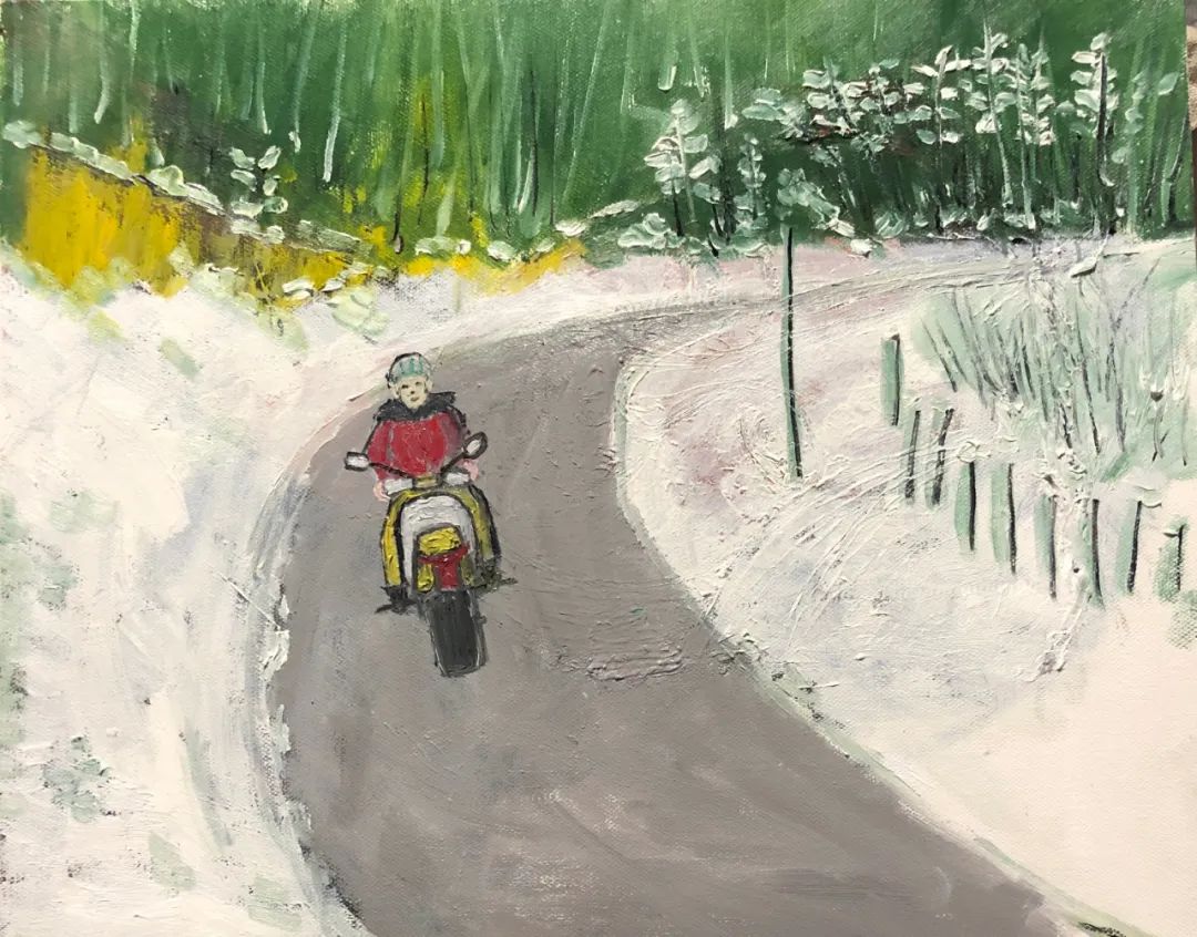 《雪天骑行》布面油画40X50CM 2021