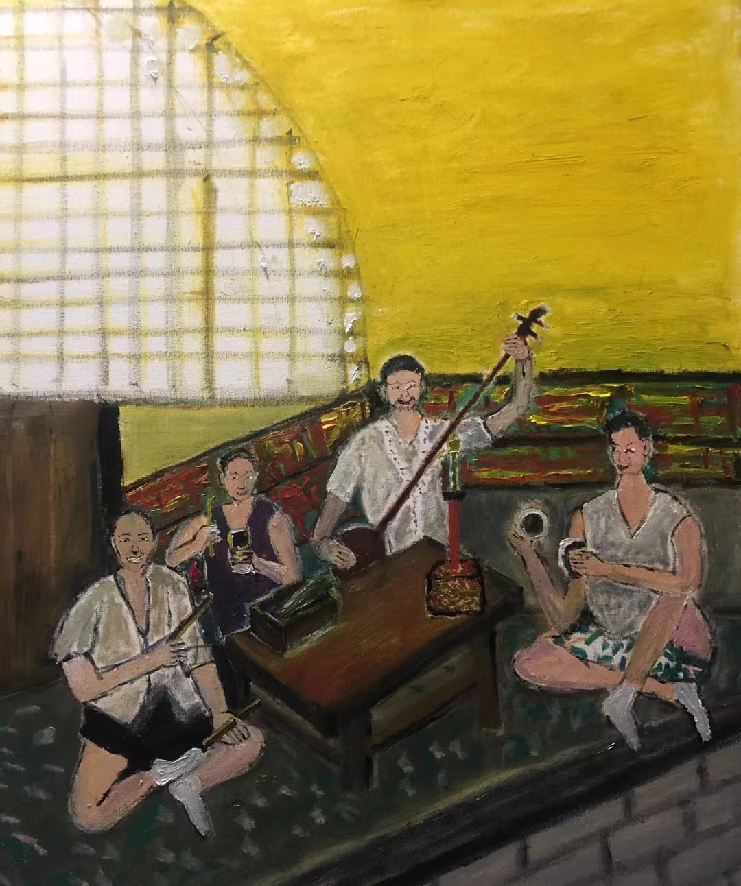 《窑洞里的四重奏》布面油画 40X50CM 2022