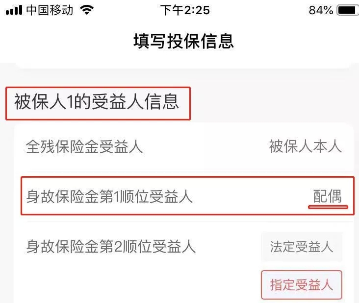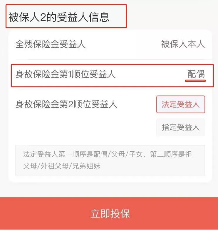 在投保的过程中,由于夫妻二人共同作为被保人,则需要填写双方的受益人。