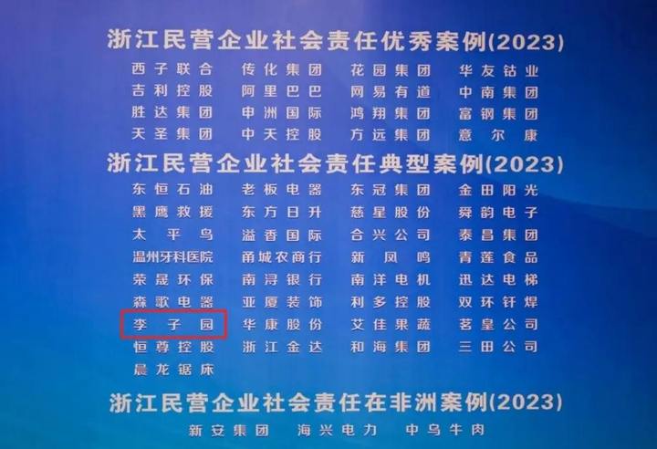 日前,由浙江省工商联、浙江工商大学主办,杭州市工商联协办的2024浙江民营企业社会责任暨浙商ESG研讨会在杭州召开,探索民营企业履行社会责任的方法路径和趋势。会上公布了2023年中国民营企业社会责任优秀案例(浙江入选企业),金东区企业浙江李子园食品股份有限公司榜上有名。