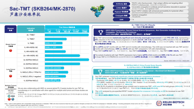从研发布局的深度上,芦康沙妥珠单抗已率先切中临床需求最迫切的肺癌、乳腺癌两大癌种,构建了较为完善的临床开发路径。