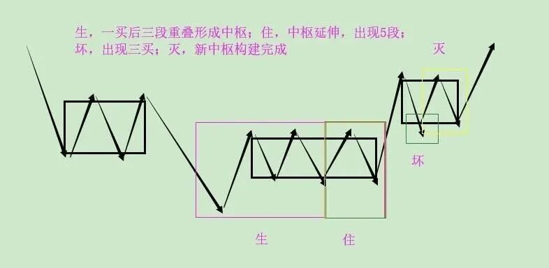 灭,新的中枢形成。如果三买后有时会发生重新回到原中枢内的情况,也就是中枢扩展,那么原中枢就还在。如果三买后没有回到原中枢而是构建了新的同级别中枢,则原中枢被证实灭亡,后续操作要以新中枢为基准。