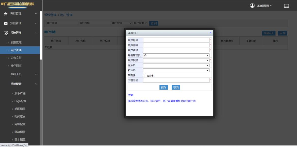 在后台用户管理页面中,新增调度用户登录管理,支持批量添加,将之前的APP用户去除了,现在只保留调度用户。