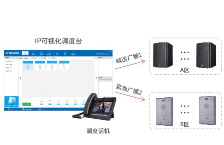 铁路控制中心能实现对所有区域进行广播、喊话以及紧急呼叫,也可局部选择1个或多个片区监控点,进行广播、喊话和呼叫。