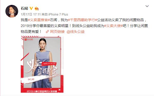 中华文娱网讯 近日,超模石闻参与了线头公益2019年度公益活动“义卖星推官”,为指定公益项目#千里西藏助学#义卖了亲自操刀设计的珠宝作品——项链“天使之翼”。