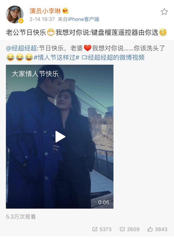 经超情人节表白老婆该洗头了小李琳:键盘榴莲遥控器由你选