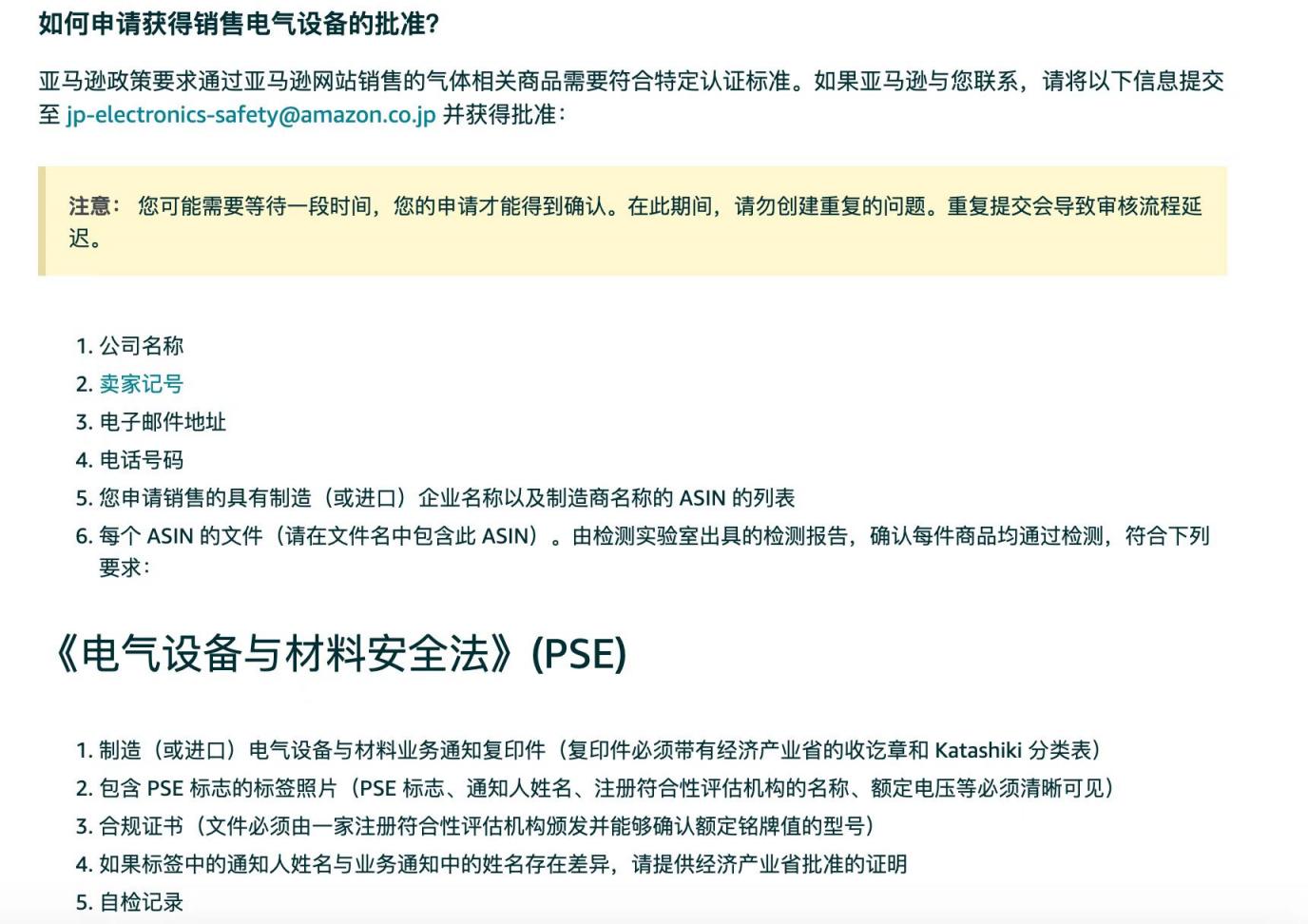 在日本站售卖蒸面器,触发了电气设备的审核,亚马逊最初的要求提交这些资料: