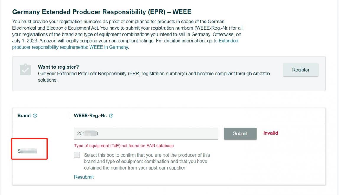 亚马逊WEEE无法验证,注意是否是品牌无效