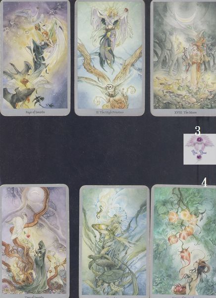 宝剑五、女教皇、月亮:
