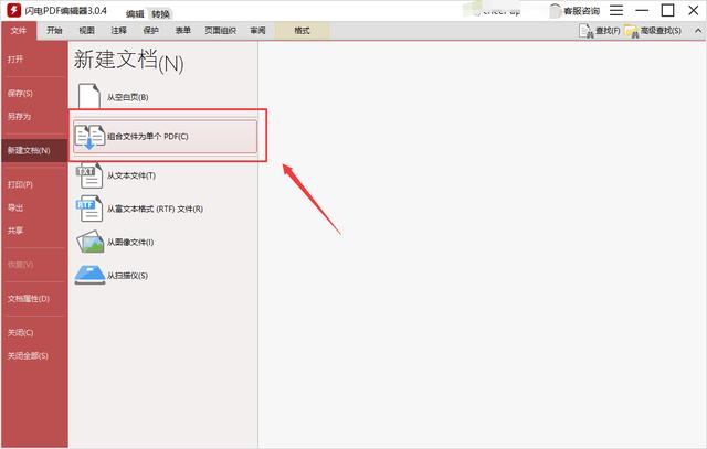 1、打开PDF编辑器,后选择“打开”-“组合文件为单个PDF”。