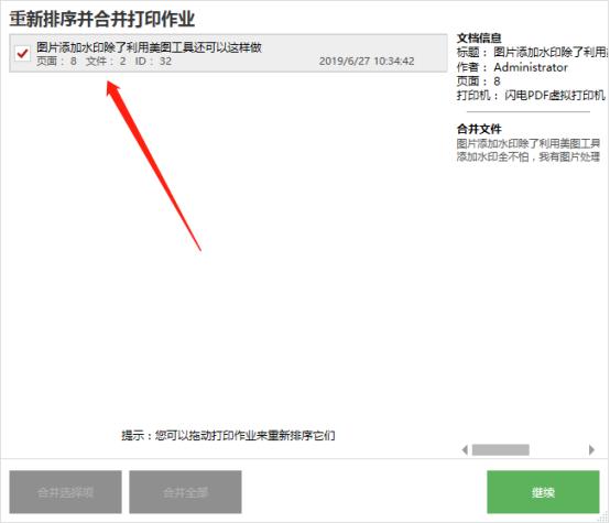第五步、下图可以清楚的看到,文件已经合并好了,我们接下来点击“继续”。