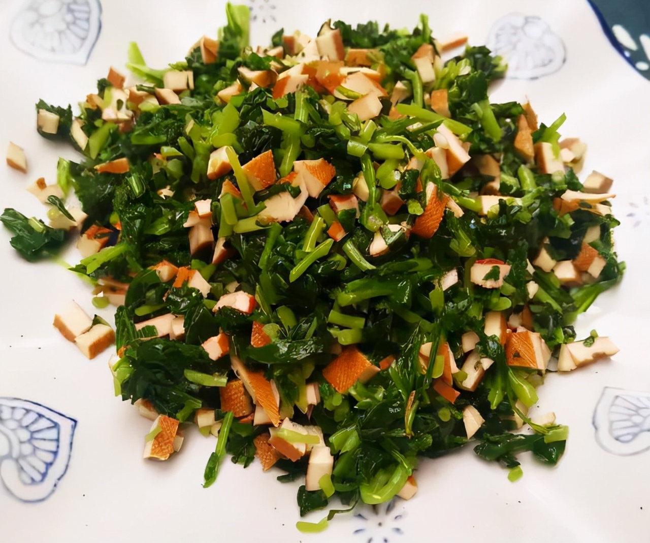 在大青山山间,翠绿鲜嫩的马兰头,咬一口茎叶,入口即是春天清新的滋味。与金菜地的茶干搭配佐食,满嘴清香,作为开胃小菜最合适不过。