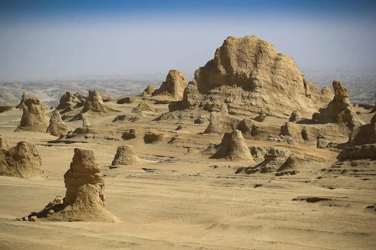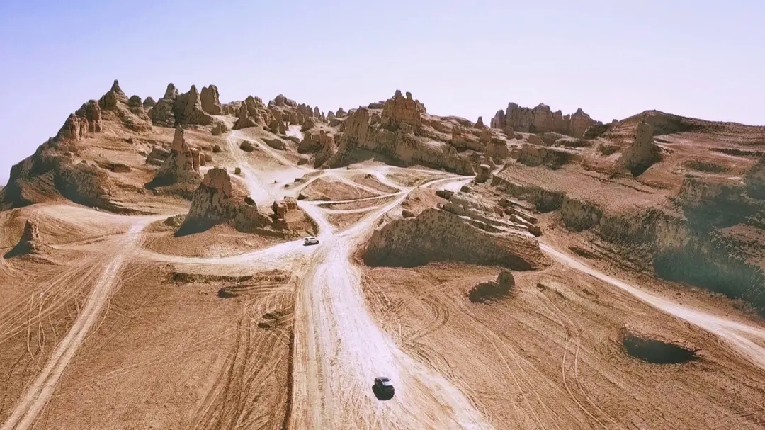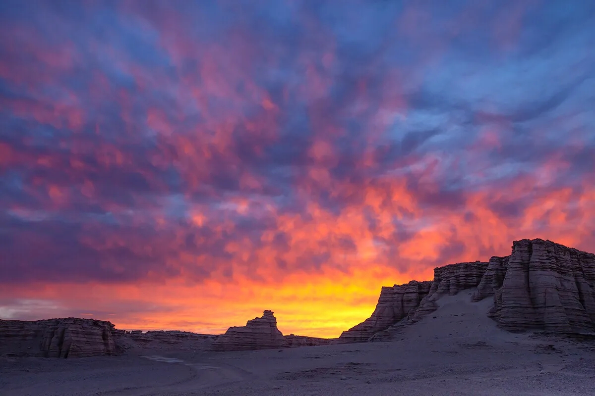 走进这处大漠奇观,伴着黄昏,大片雅丹地貌闪着璀璨金光,在荒无人烟与光影交错间,仿佛已经脱离地球表面,来到了异星之上。