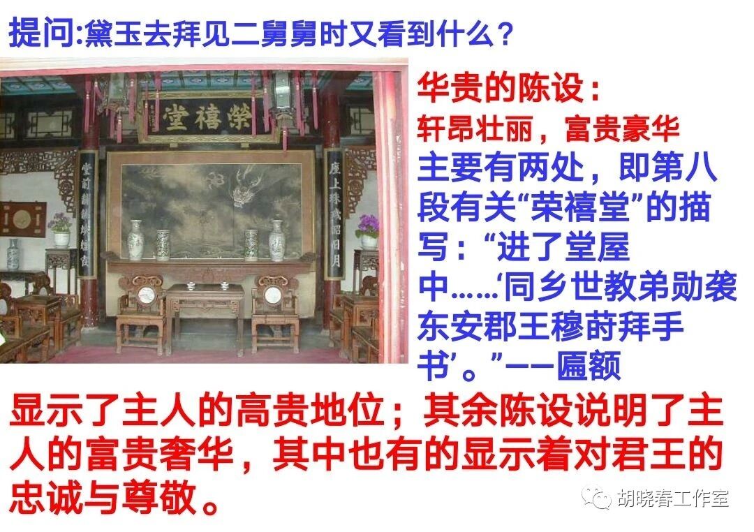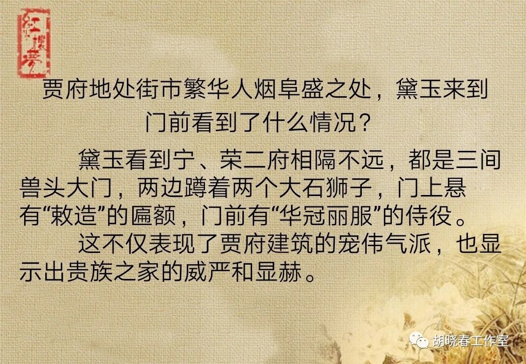 接下来,作者通过林黛玉进贾府所见所闻,向读者讲述了贾府布局,各府的摆设,贾府的奢华,还有贾府里面重要的几个人物。