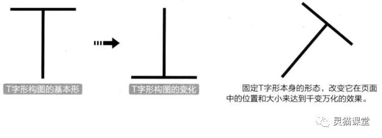 固定T字形本身的形态,改变它在页面中的位置和大小来达到千变万化的效果。