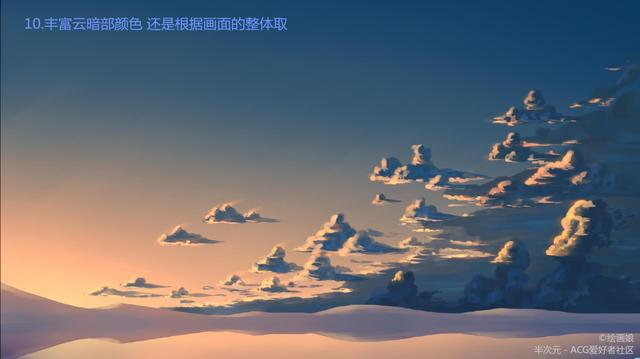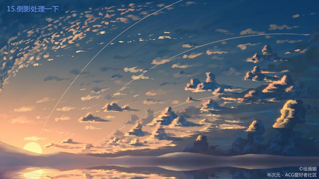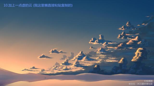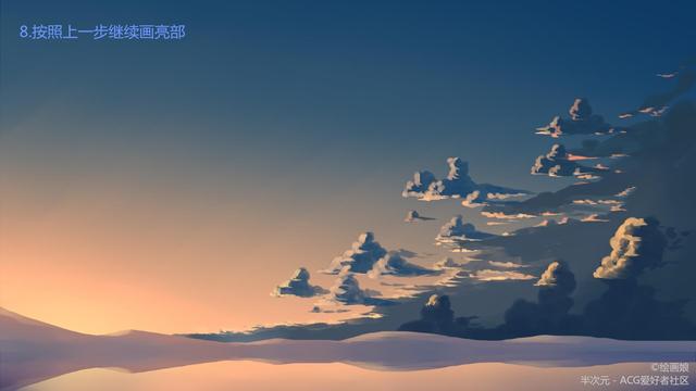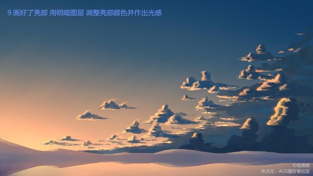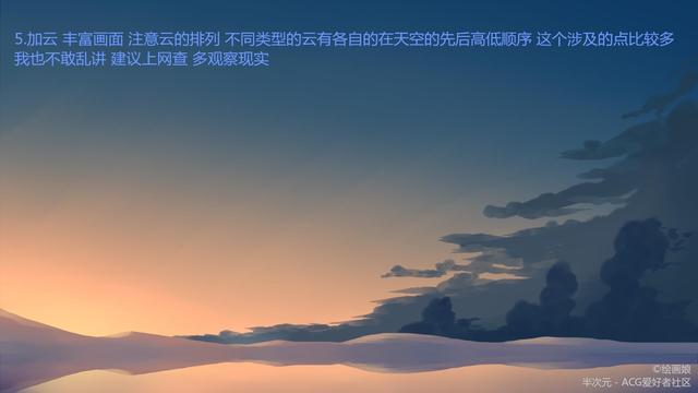 加云,云从暗部开始画,先不着急加亮部,颜色根据天色去向(这个自己领悟)