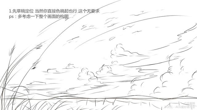 先草稿定位,当然你直接色稿起也行,这个无要求,多考虑下整个画面的构图