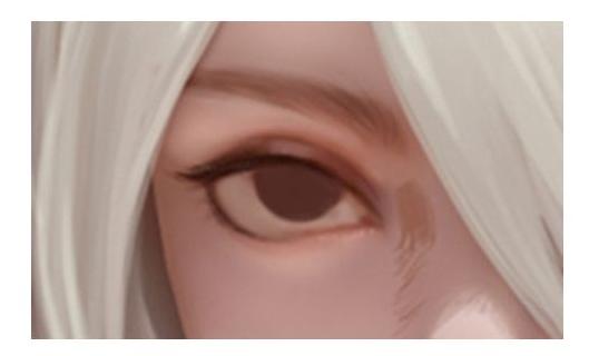 到了这一步就开始深入细化了,这一步主要是将瞳孔以及睫毛颜色交代清楚,并稍微的刻画了
