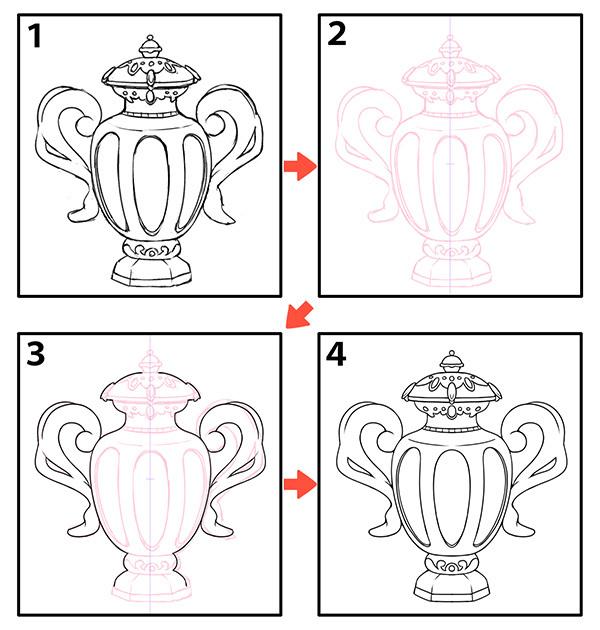 您所要做的就是画出作为图案的粗糙物体,在中心画一个对称的尺子并画出一侧。