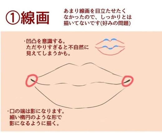 http://p6-tt.byteimg.com/large/pgc-image/d1545664ee5b449ba949e874e21fb330?from=pc第一步,先用线条画出基本的嘴唇轮廓,确立一个好的形状能让你剩下不少事情呢,所以一定要注意一下,然后两端画上立体线,这样子基本型就ok啦、
