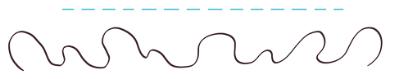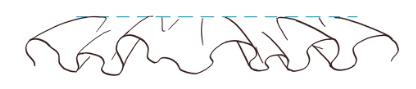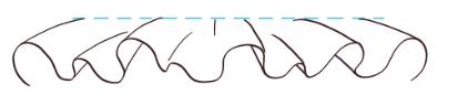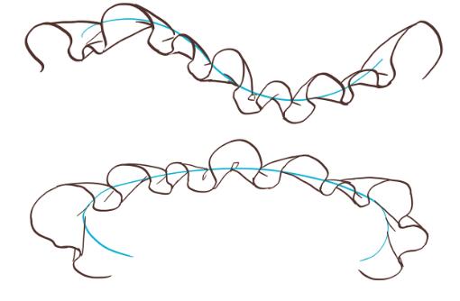 先思考褶子集中的位置(淡蓝色虚线),波浪的大小不固定,尽量画得随意一些。