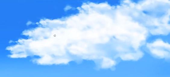 接下来,用刷子从云层上方添加白色。对其进行调整,使其看起来像云。
