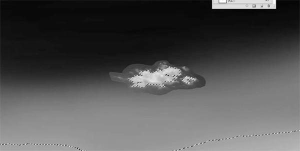 选择一个填充为白色的图层,使用“套索工具”仅选择云部分,然后将其切出以使云周围的区域变黑。