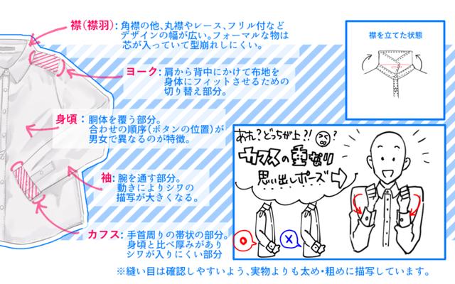 因此,这次我将解释衣服(衬衫和裙子)的基本结构以及绘制时的要点。如果您不擅长绘制衣服,例如如何绘制皱纹和裙子,请参考它。