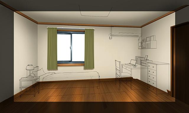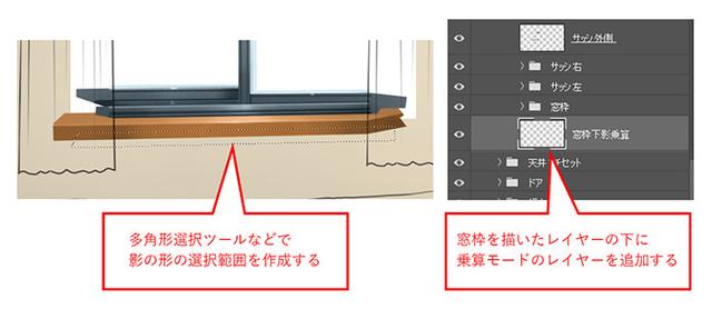 对窗框和窗扇进行着色时,绘制从天花板照明的光落下的阴影。